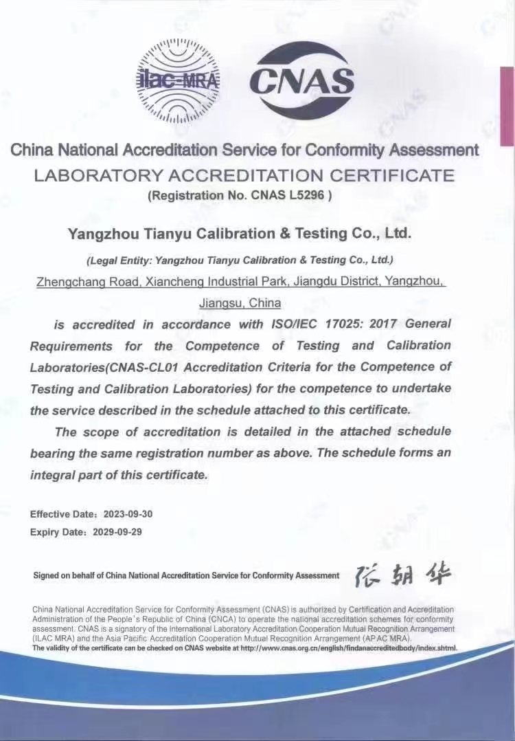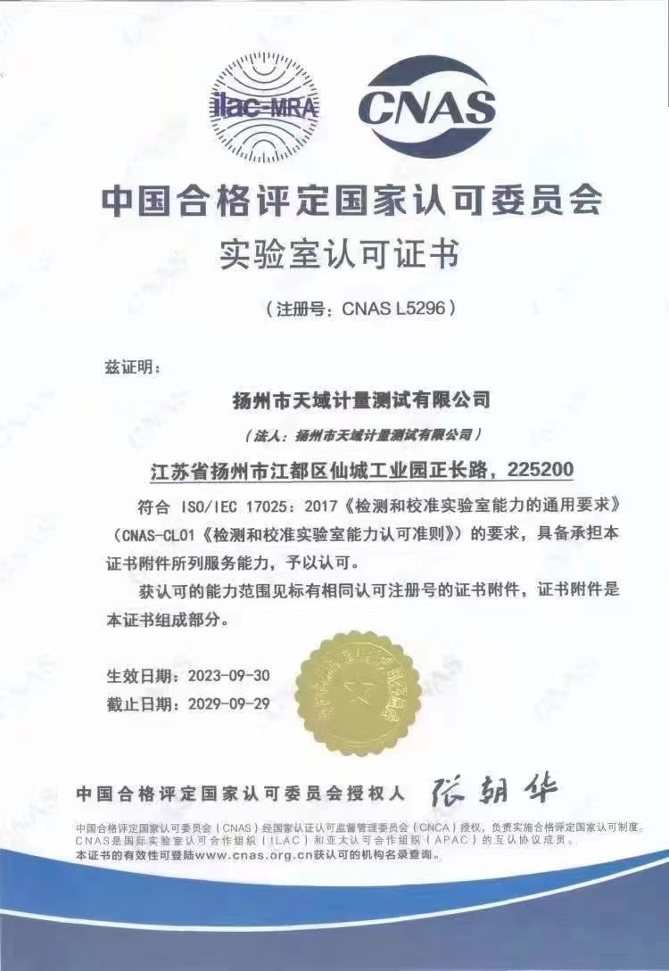 揚州市天域計量測試有限公司,坐落在交通便利的揚州市江都區(qū)仙城工業(yè)園,成立于2010年10月,2011年11月正式獲取中國合格評定國家認可委員會認可(授權(quán)),注冊號:CNAS L5296。近幾年的發(fā)展,實驗室已具備了較大規(guī)模,并形成了集計量器具檢測,計量技術(shù)咨詢和計量器具銷售為一體的專業(yè)化技術(shù)機構(gòu),客戶覆蓋蘇南、蘇北、和浙江,安徽部分地區(qū),客戶群總量達到了上千家企事業(yè)單位。實驗室建立健全了一套較為完整的內(nèi)外部質(zhì)量管理體系,至今未發(fā)生糾紛和客戶投訴事件。