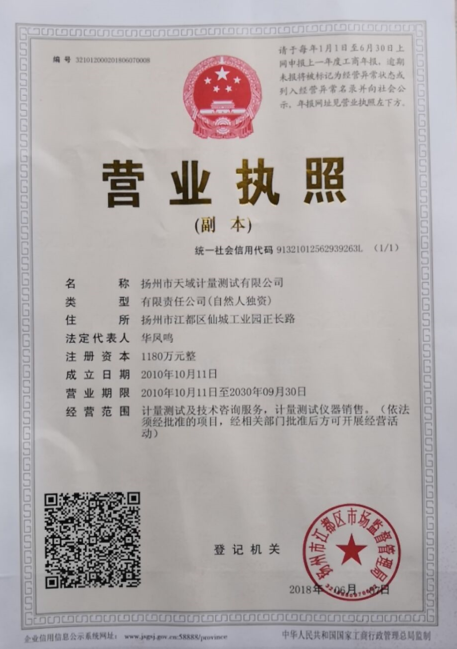 揚州市天域計量測試有限公司,是于2010年10月成立的一家集計量器具檢測,計量技術(shù)咨詢和計量器具銷售為一體的專業(yè)化技術(shù)機構(gòu)的專業(yè)機構(gòu)。